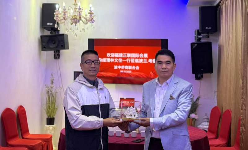 2025年10月8日,波中侨商联合会会长杨山毅与福建正联国际会展商务有限公司总经理、福建省机电科技产品进出口商会副会长林文佺率领福建按摩椅产业代表团一行,在波兰华沙兴隆酒店成功举行“健康产业出海波兰合作洽谈会”。随行企业包括福安市联禾科技有限公司、福安市睿立电子有限公司及福安市喜来乐电器有限公司。此次洽谈成果丰硕,双方围绕如何发挥各自优势、携手开拓波兰及中东欧市场进行了深入交流。