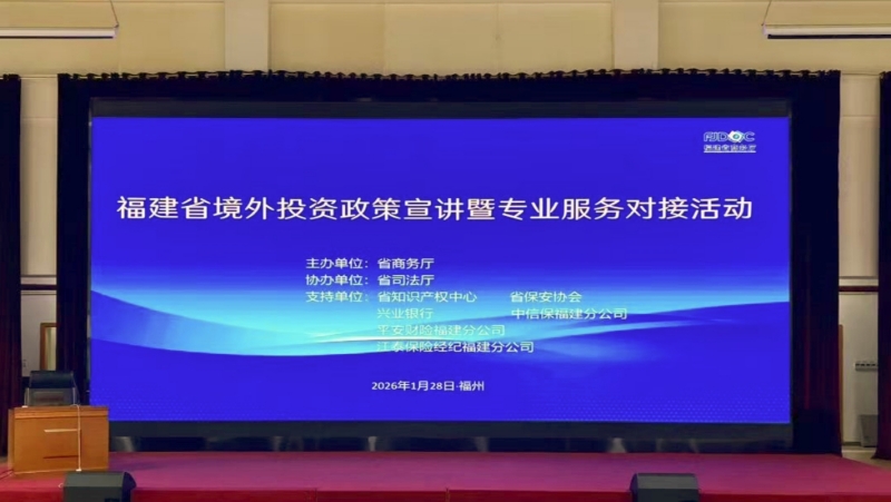 此次活动以助力本省企业稳健“出海”、提升境外投资合规与风险防范能力为核心目标。会上,省商务厅外经处负责人详细解读了境外投资合规要求、2026年相关支持资金申请要点,并介绍了闽企出海综合服务体系。闽江海外发展服务中心、省律师协会、省知识产权保护中心等单位代表,分别就海外服务网络建设、涉外法律服务及知识产权海外保护支持措施进行了说明。中国信保、平安财险、兴业银行及江泰国际合作联盟等专业服务机构也分享了涵盖海外投资保险、金融支持、人员安全与救援的一站式服务方案。