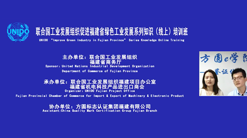 5月28日上午,2020年联合国工发组织“促进福建省绿色工业发展”系列知识(线上)培训班第三期在方圆标志认证集团福建分公司直播间顺利开班。