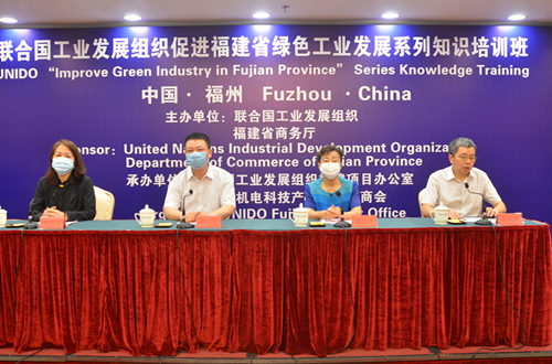 6月2日上午,2020年联合国工发组织“促进福建省绿色工业发展”系列知识培训班第四期在福州福建会堂四层泉州厅顺利开班。福建省商务厅对外投资与经济合作处四级调研员郭华、联合国工业发展组织福建项目办公室总协调员贺汪洋、福建省机电科技产品进出口商会会长洪文洁、福建省机电科技产品进出口商会高级顾问黄晓东、方圆标志认证集团福建有限公司副总经理张孔峰、福建省机电科技产品进出口商会副会长林文佺等出席了开班仪式。
