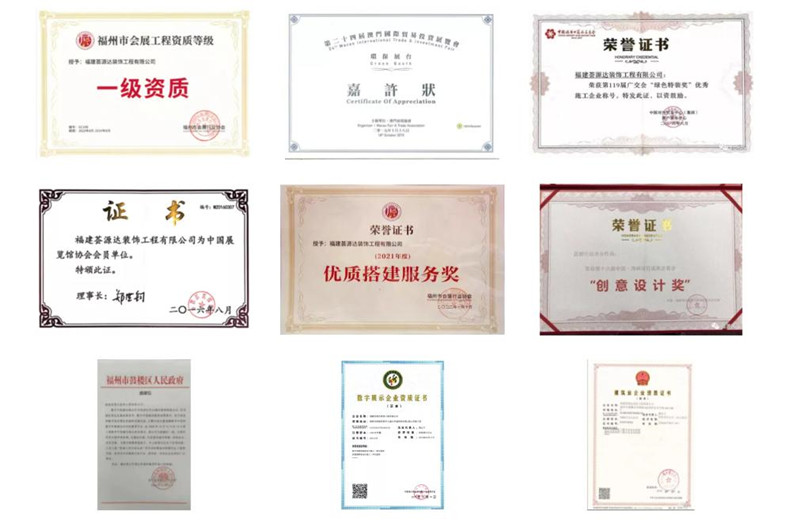 福建荟源达装饰工程有限公司作为汇源展览品牌和服务领域的延伸,自2001年跟随汇源展览集团共同成长,是一家专业从事展馆展厅、展览会议设计施工的企业。历经岁月磨砺,累计承接大型展会主场承建40余场,设计搭建特装展台超过100万m2,装修执行常设展厅近10万m2,策划服务会议活动60余场。获得了中国展览馆协会展览工程一级陈列馆设计施工一级、建筑装饰设计乙级工程二级以及电子与智能化工程、数字化智能展馆、智慧博物馆等行业**资质, 打造最全面的展示资质体系。