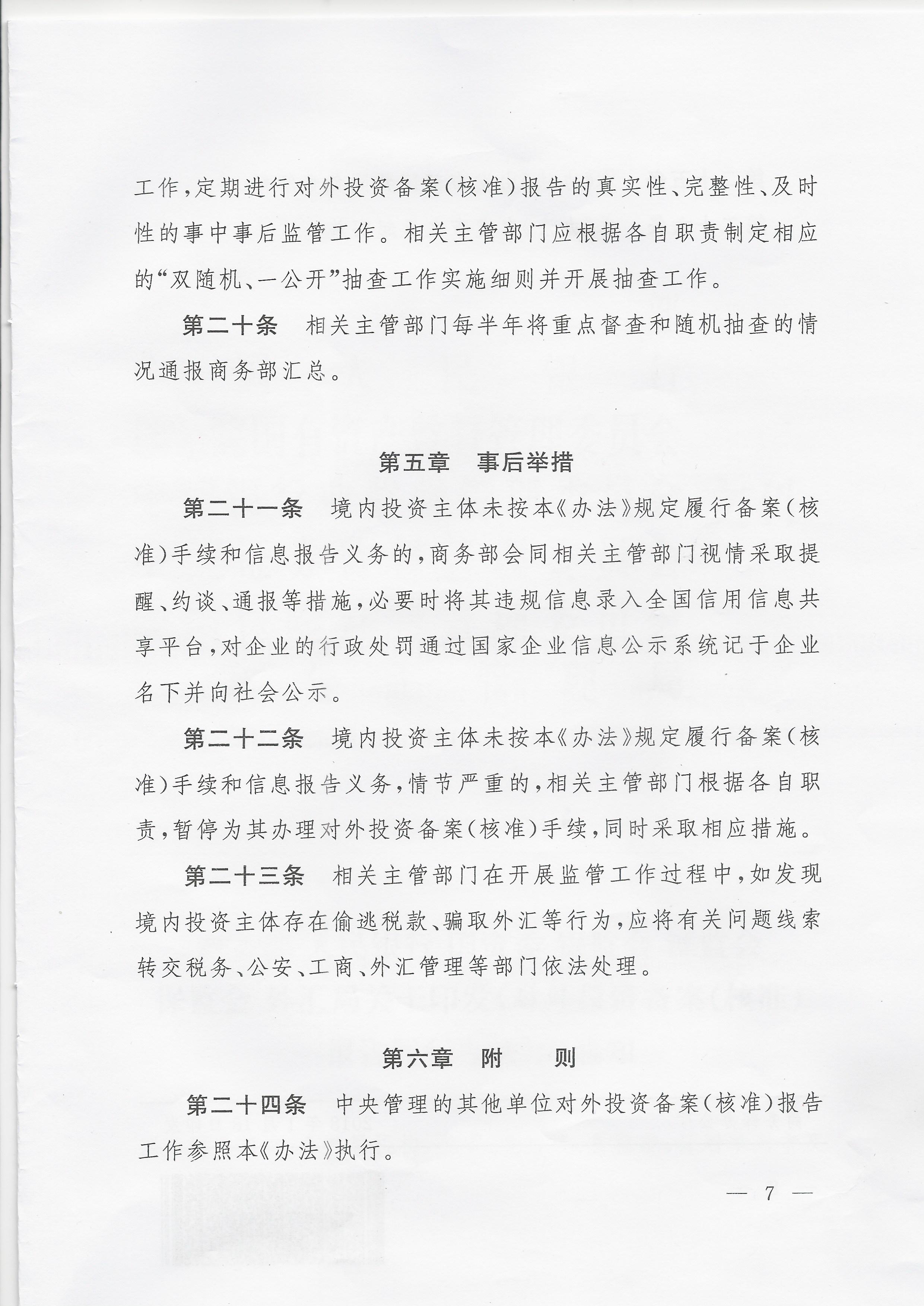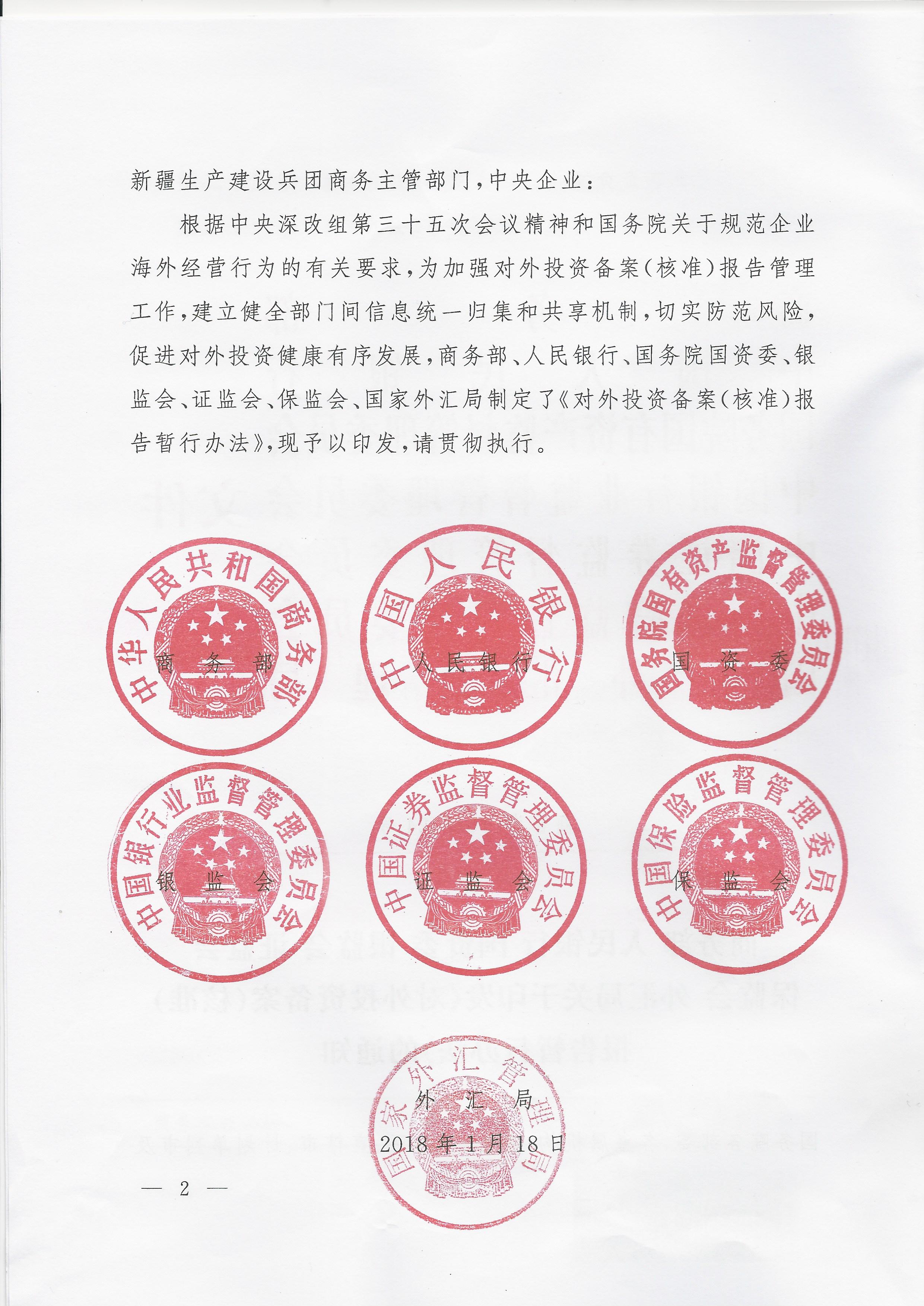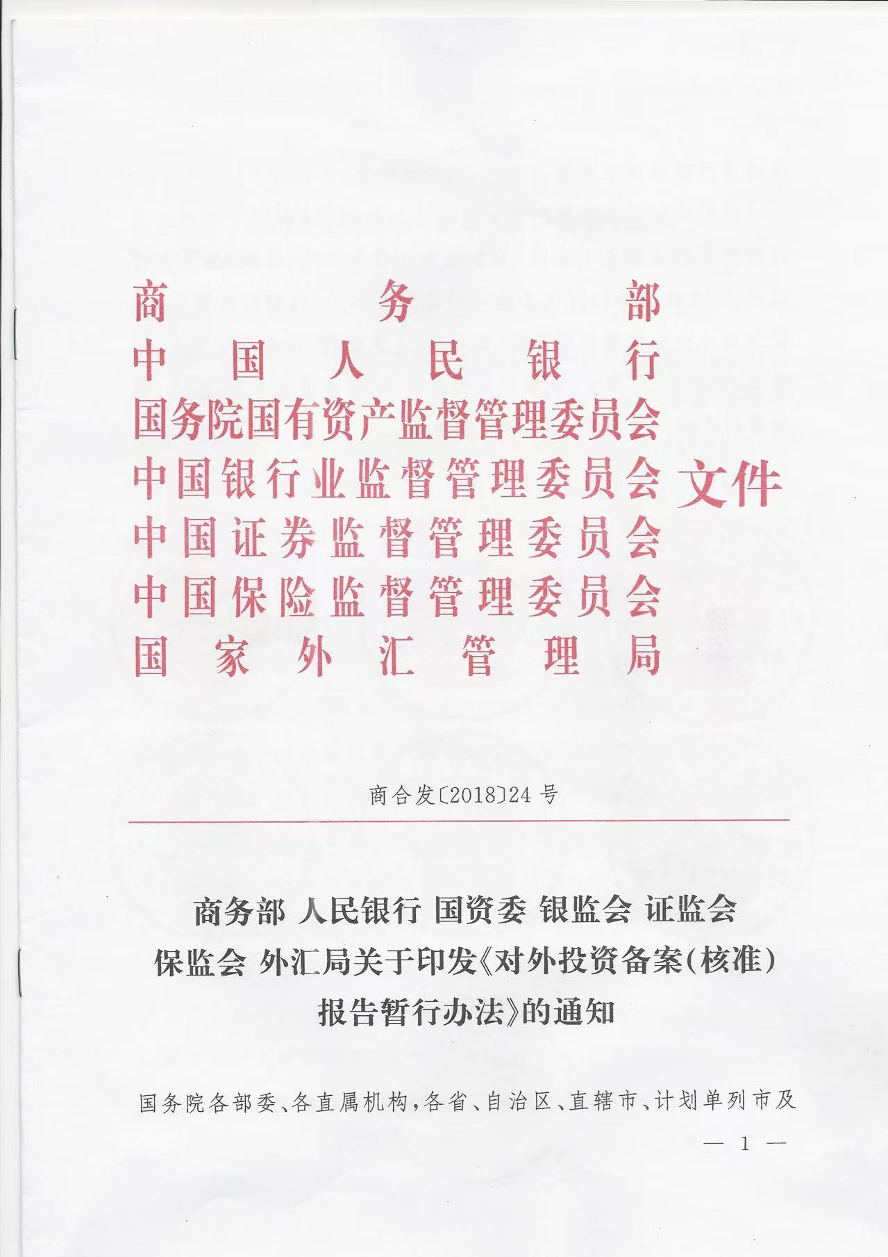 商务部 人民银行 国资委 银监会 证监会 保监会 外汇局《对外投资备案(核准)报告暂行办法》