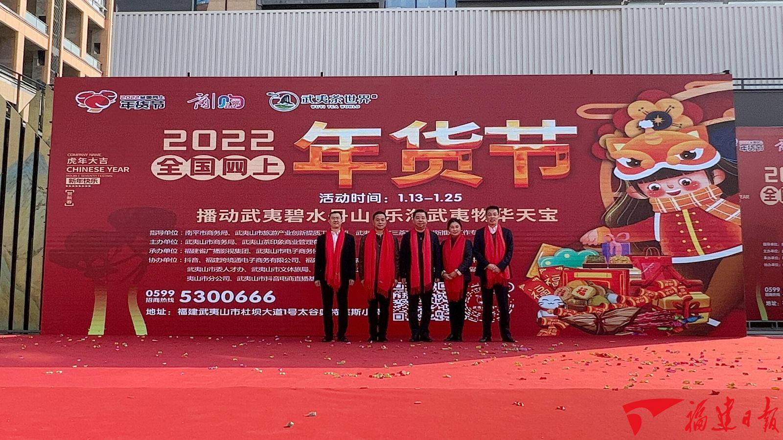 为贯彻商务部《关于开展“2022全国网上年货节”活动的通知》精神以及省商务厅的工作部署,进一步发挥电子商务释放消费活力、推动消费升级的重要作用,提振节日消费气氛,培育新型消费热点,在南平市商务局指导下武夷山市商务局积极响应,率先于2022年1月13日在武夷山市举办“2022全国网上年货节暨电商主播大赛武夷山会场启动仪式”。福建省商务厅党组成员、副厅长杭东,南平市商务局局长温文辉,武夷山市委副书记、市长谢启龙,武夷山市政协主席陈先珍等领导出席活动。