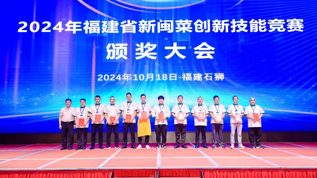 10月16日至18日,由福建省商务厅和福建省总工会联合主办,泉州市商务局、石狮市人民政府、福建省财贸轻纺烟草医药工会工作委员会以及福建省餐饮烹饪行业协会共同承办的2024年福建省新闽菜创新技能竞赛在泉州石狮顺利落下帷幕。福建省商务厅副厅长杭东,泉州市委常委、政法委书记、市政府副市长、市申创“世界美食之都”工作专班常务副主任、办公室主任蔡天守,省总工会二级巡视员孙勤,泉州市商务局党组书记、局长张小红、石狮市政府市长余志伟、福建省餐饮烹饪行业协会书记、执行会长翁贵明等领导莅临现场并为获奖选手颁奖。