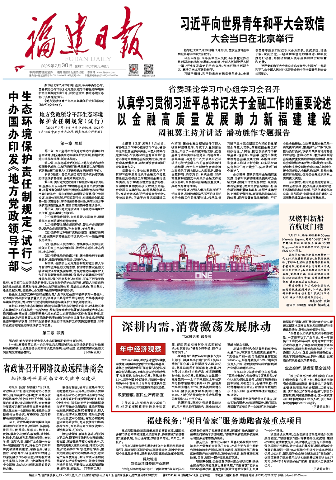 站在年中节点回望,八闽大地上提振消费的政策精度、市场锐度与民生温度深度契合,对牵引投资、扩大内需的重要作用进一步巩固,不断提升着国内大循环的内生动力。