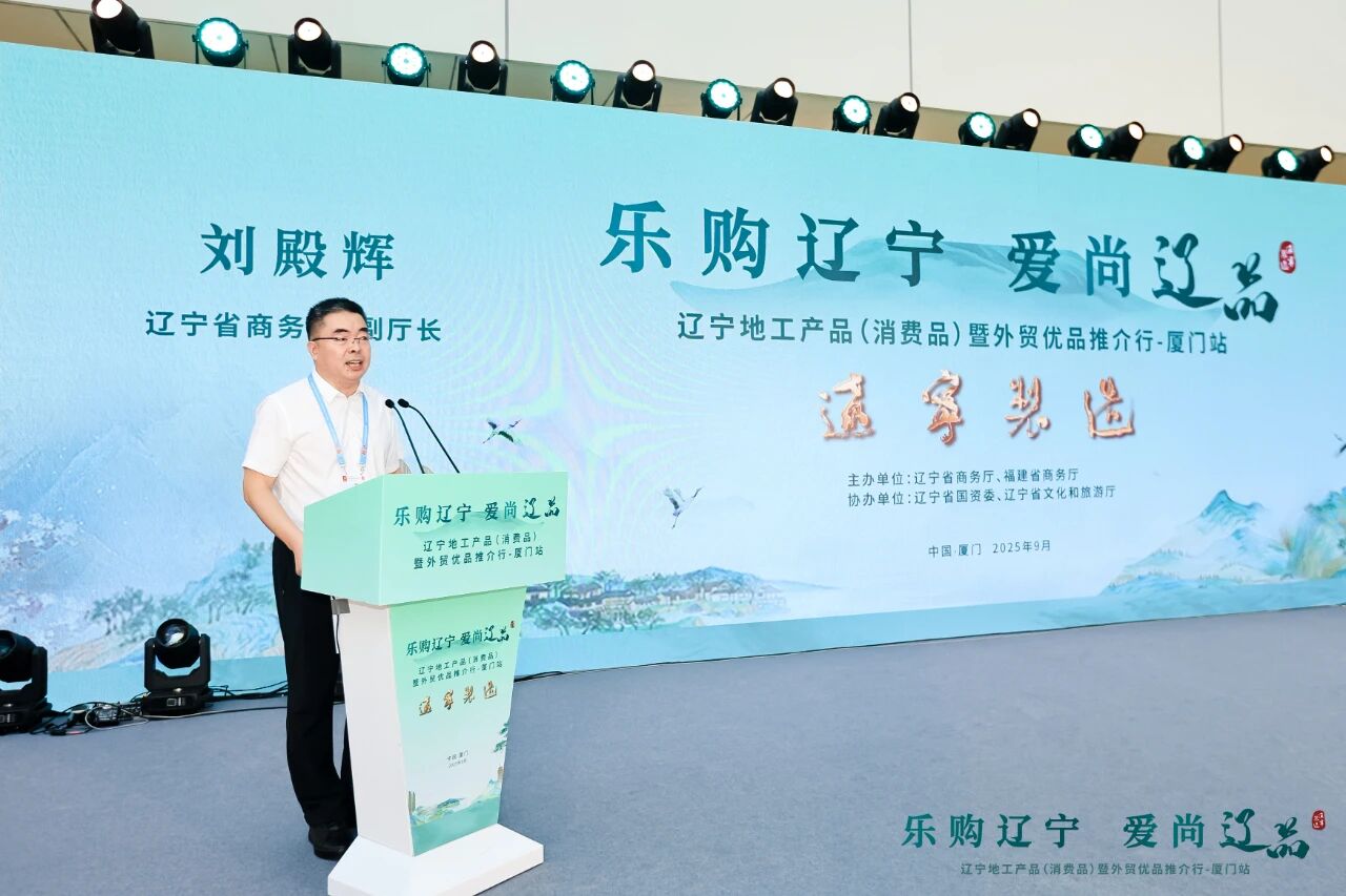 2025年9月6日,辽宁地工产品(消费品)暨外贸优品推介活动在厦门举办。本次活动由辽宁省商务厅、福建省商务厅共同主办,辽宁省国有资产监督管理委员会、辽宁省文化和旅游厅以及福建省辽宁商会、福建省批发零售行业协会支持举办,活动以“乐购辽宁,爱尚辽品”为主题,集中展示辽宁制造好品好物和外贸优品,搭建闽辽两省产销对接桥梁,助力辽宁特色产品拓展东南沿海市场。辽宁省商务厅副厅长刘殿辉先生、福建省商务厅二级巡视员赵晶女士出席活动。