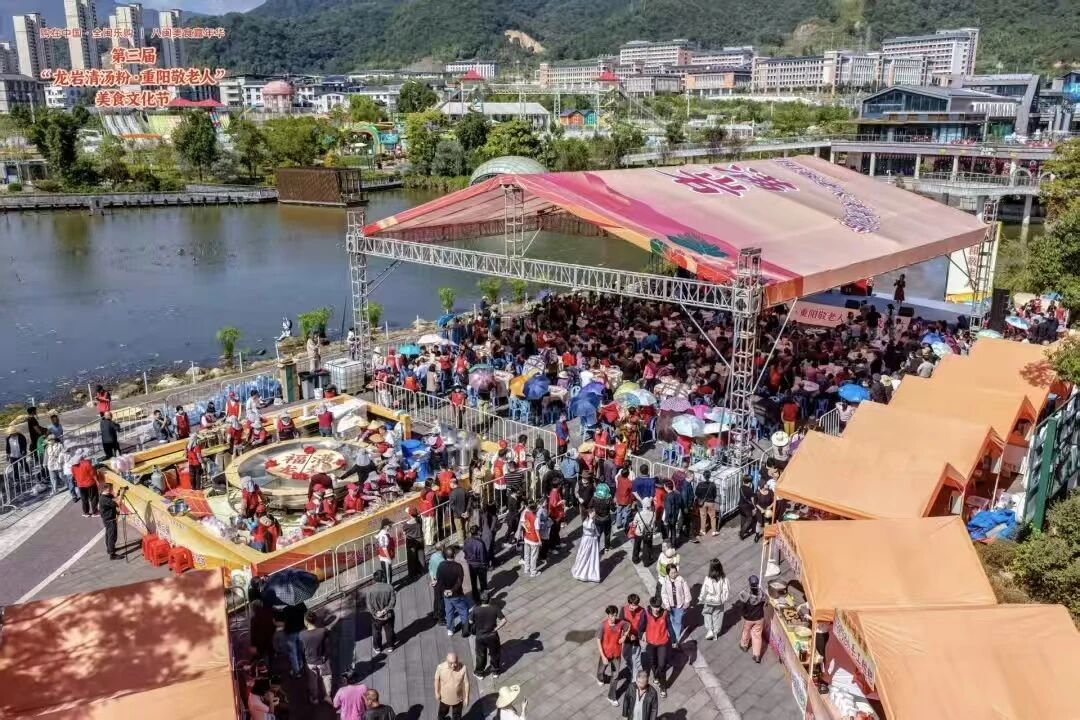 打造“餐饮+”多元消费场景,立足美食文化特色,打响本土美食IP。10月25日至26日,第三届“福满重阳・清汤粉美食文化节”在中心城区未来城举办,现场“福锅”煮制清汤粉,免费发放清汤粉1.1万余份。同步开设新罗特色美食市集与非遗文创市集,配套公益服务,实现“美食引流、多元消费”。