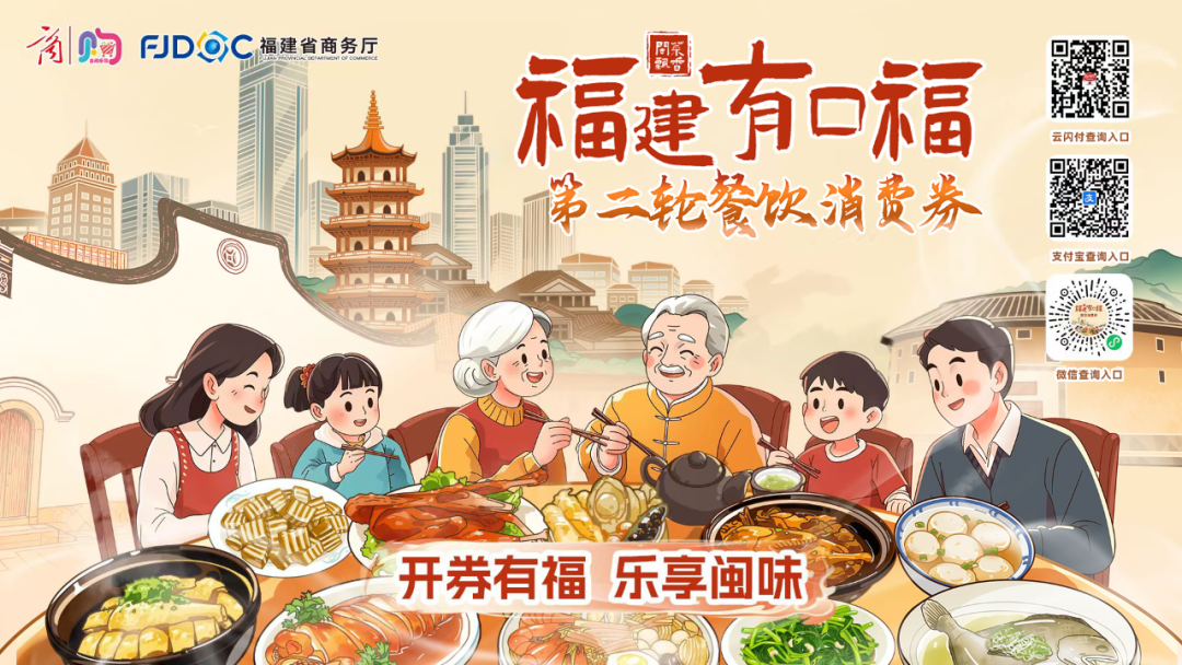 省商务厅联手三大支付平台,发放今年第二期“福建有口福”第二轮餐饮消费券,最高立减300元,吸引近百万人次参与;漳州各区县推出岁末汽车促销活动,覆盖各个价位燃油车和新能源车,最高可补贴5000元;屏南结合时令文旅,推出“柿”惠食宿,游客可在食宿商户享消费立减……