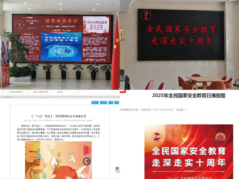 一是营造和推动形成维护国家安全人人有责的浓厚氛围。策划制定普法活动方案,并做好宣传动员工作,组织厅机关和厅属事业单位干部职工踊跃参加全民国家安全法律知识竞答和朗读活动,提高大家对省司法厅在今日头条“福建司法”官方账号上开设活动的参与率、知晓率。4月15日,给干部职工编发“全民国家安全教育日”普法宣传短信280多条,做到全厅上下人人周知今年是国家安全法颁布施行10周年,4月15日是第十个全民国家安全教育日,推动大安全理念深入人心。