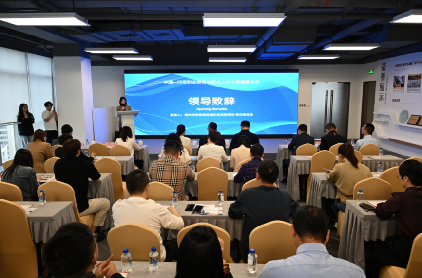 4月17日,中国—印尼国际教育与校企人才合作圆桌会议在闽企出海综合服务港(位于嘉里中心)举行。福州市商务局副局长陈正勋,印尼总统大学校长Handa S. Abidin,福州市教育局、福州新区仓山功能区管委会、福州本地高校、出海印尼企业、印中商务中心等相关负责同志参加了会议。