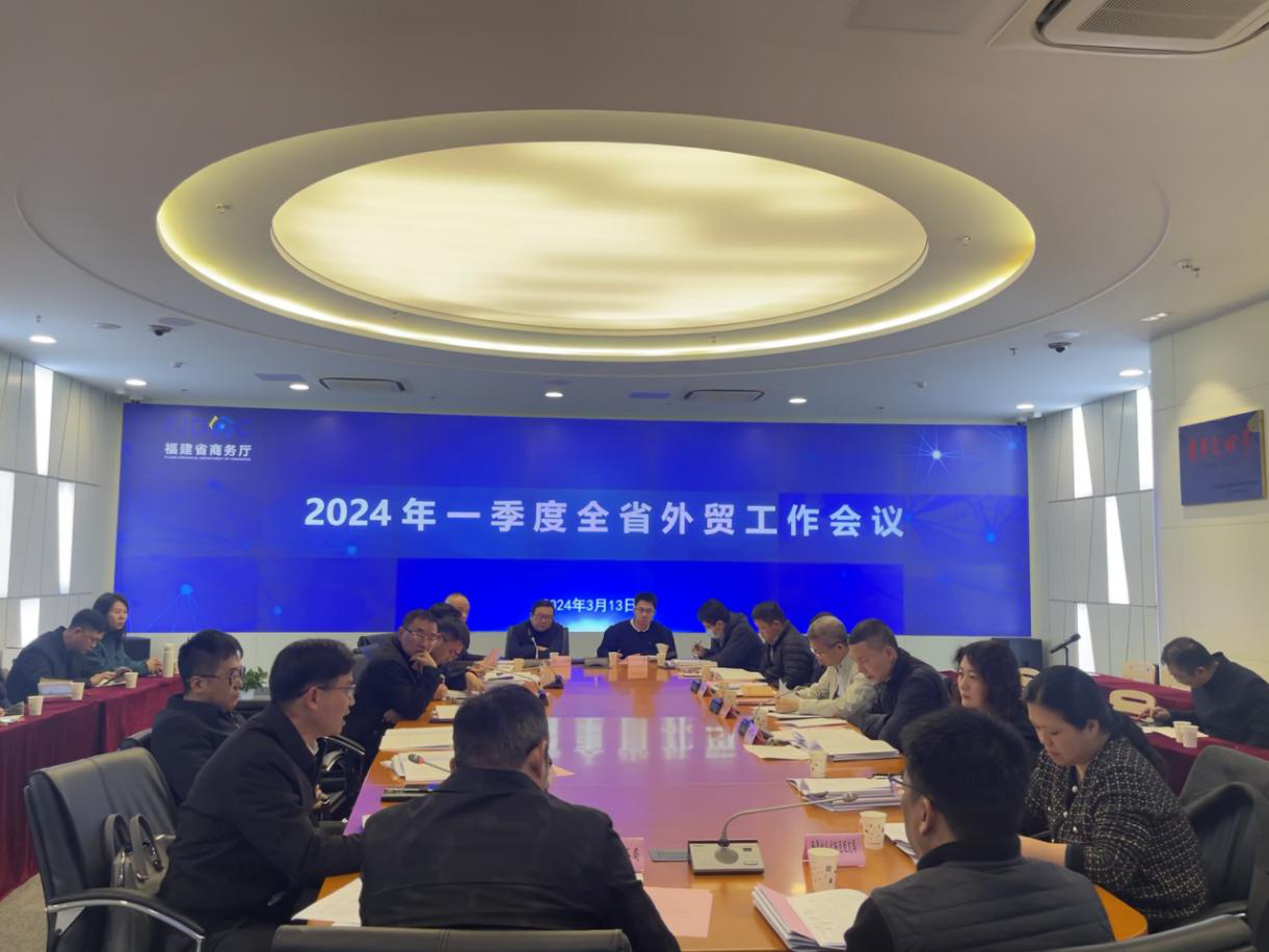 3月13日,福建省商务厅召开一季度全省外贸工作会议,贯彻落实全国外贸工作会议精神和省委省政府工作部署,分析当前外贸形势,谋划下一步重点工作,全力以赴确保一季度外贸“开门红”“开门稳”,努力实现全年工作目标。