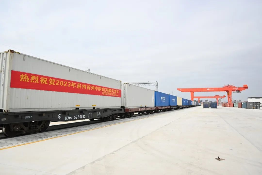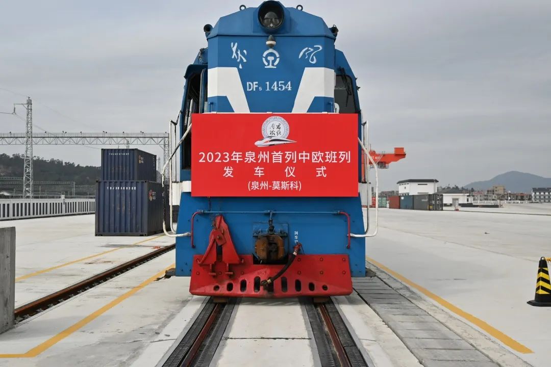 2月3日,伴随一声嘹亮的汽笛声,满载着55个集装箱、货值1750万元的日用百货由和谐号电力机车牵引的中欧班列自兴泉铁路黄塘站顺利出发,经内蒙古满洲里出境后,直奔1.1万公里外的莫斯科,这是2022年12月30日兴泉铁路开通后黄塘站作为泉州中欧班列始发站的首发之旅,开启新一年泉州中欧班列“加速度”发展新征程。新路线比原经漳泉肖铁路少213公里,加上兴泉铁路时速提高到160公里,预计开行16天,比原路线节省2天时间,将有力促进“海丝”与“陆丝”无缝对接,促进泉州外贸高质量发展。