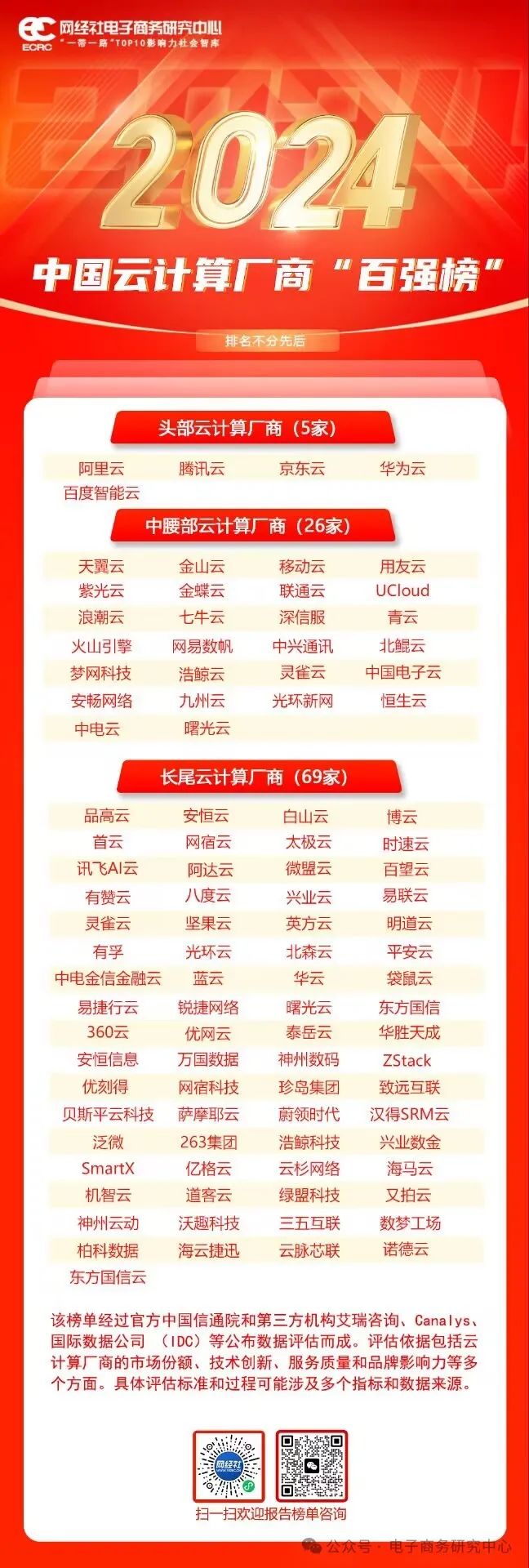 数商百强榜 | 《2024年中国云计算厂商“百强榜”》网经社发布