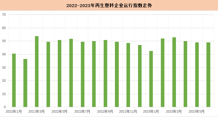 2023年6月份国内再生塑料企业运行综合指数为49%,较上月持平