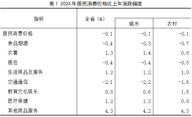 全年居民消费价格比上年下降0.1%。工业生产者出厂价格下降1.2%。工业生产者购进价格下降1.5%。农产品生产者价格下降2.0%。