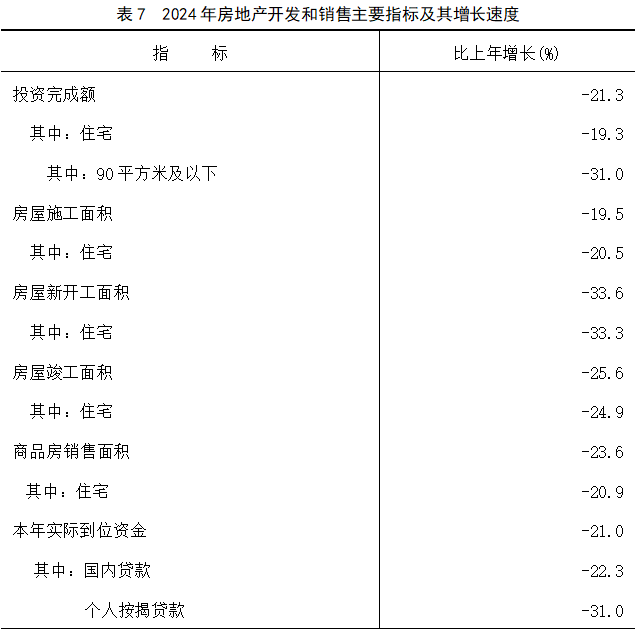 全年房地产开发投资比上年下降21.3%。其中,住宅投资下降19.3%。