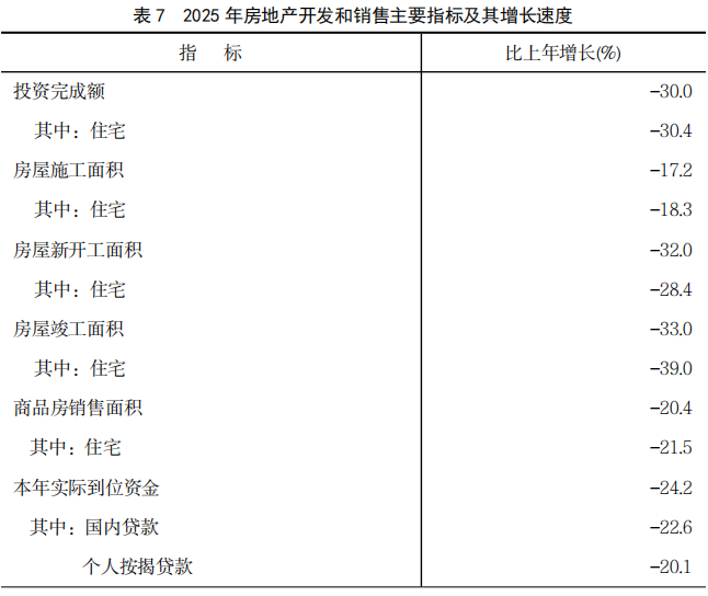 全年房地产开发投资比上年下降30.0%。其中,住宅投资下降30.4%。