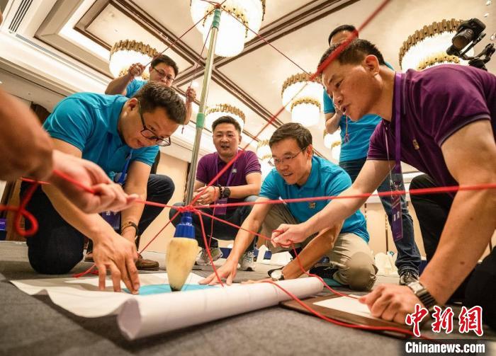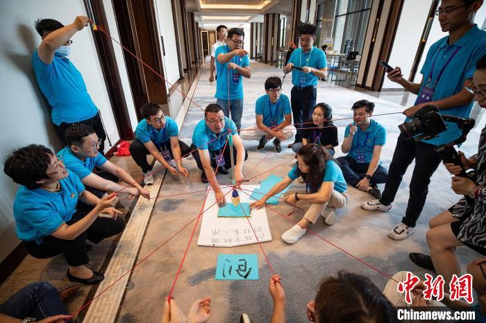 长三角两岸青年创新创业总决赛的创业训练营上,两岸创业青年携手合作写创业标语。 唐娟 摄