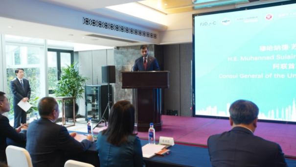 穆哈纳德·苏莱曼·纳克比总领事表示,福建是联通世界、推动科技创新的中心之一,迪拜是中国商品通往西亚、欧洲和非洲的再出口贸易枢纽。中国是阿联酋的第一大贸易伙伴,2022年中阿贸易额992.7亿美元,同比增长37.4%。随着中阿全面战略合作伙伴关系的建立,福建和阿联酋合作将探索更多可能,双方在可再生能源、科技、创新、人工智能、粮食安全等方面的合作存在巨大空间。