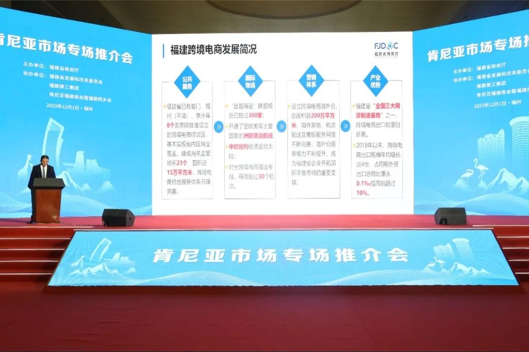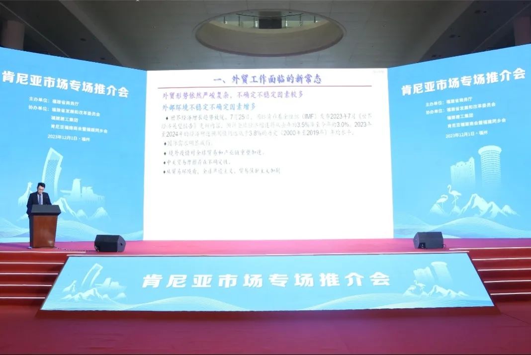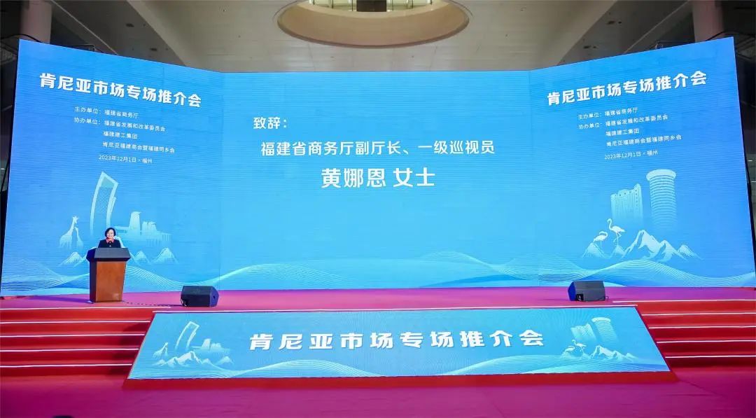 12月1日,在第二届福品博览会期间,“肯尼亚市场专场推介会”在福州海峡国际会展中心成功举办。本次推介会由省商务厅主办,省发改委、福建建工集团、肯尼亚福建商会暨福建同乡会协办,旨在推动今年9月份省主要领导出访肯尼亚成果转化,助力福建企业开拓肯尼亚和非洲市场。有意开拓肯尼亚市场的福建企业及部分商协会,在肯尼亚投资经营的闽籍企业,肯尼亚闽籍侨团商会等100多人参加。省商务厅副厅长、一级巡视员黄娜恩出席推介会并致辞,肯尼亚投资局局长June Chepkemei女士以视频推介方式参加此次活动。福建建工集团副总经理林维出席推介会。