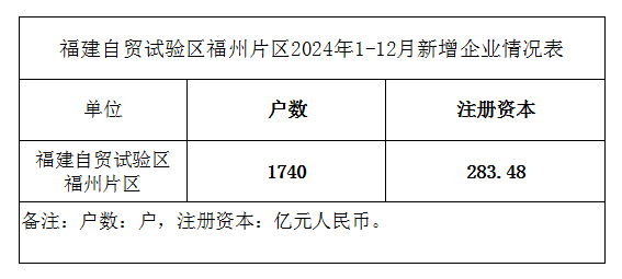 福建自贸试验区福州片区2024年1-12月新增企业情况表