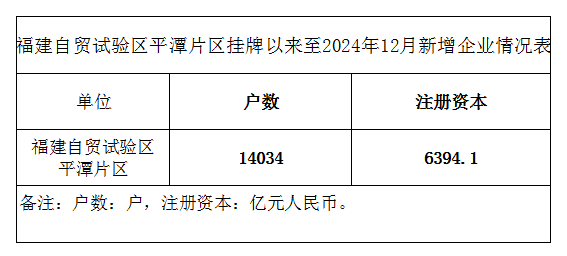 福建自贸试验区平潭片区挂牌以来至2024年12月新增企业情况表