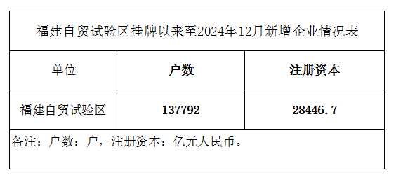 福建自贸试验区挂牌以来至2024年12月新增企业情况表