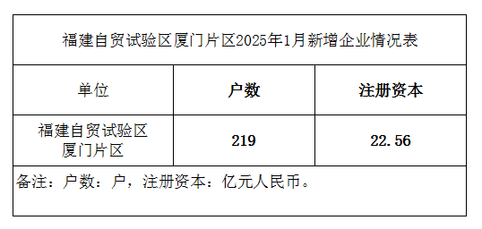 福建自贸试验区厦门片区2025年1月新增企业情况表