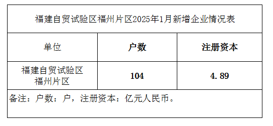 福建自贸试验区福州片区2025年1月新增企业情况表