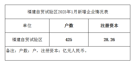 福建自贸试验区2025年1月新增企业情况表