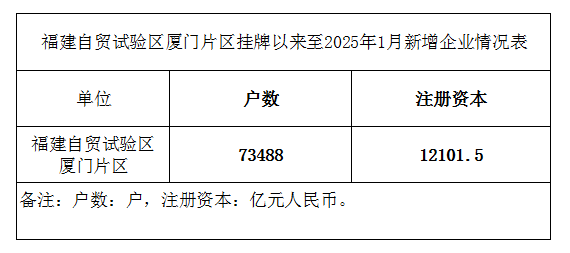 福建自贸试验区厦门片区挂牌以来至2025年1月新增企业情况表