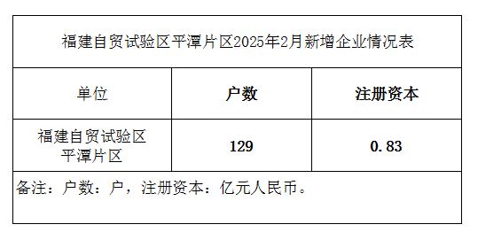 福建自贸试验区平潭片区2025年2月新增企业情况表