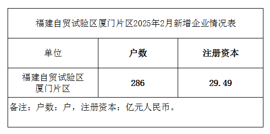 福建自贸试验区厦门片区2025年2月新增企业情况表