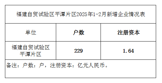 福建自贸试验区平潭片区2025年1-2月新增企业情况表