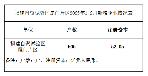 福建自贸试验区厦门片区2025年1-2月新增企业情况表