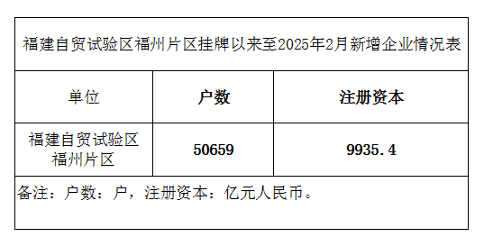 福建自贸试验区福州片区挂牌以来至2025年2月新增企业情况表