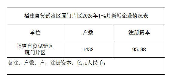 福建自贸试验区厦门片区2025年1-4月新增企业情况表