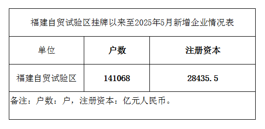 福建自贸试验区挂牌以来至2025年5月新增企业情况表