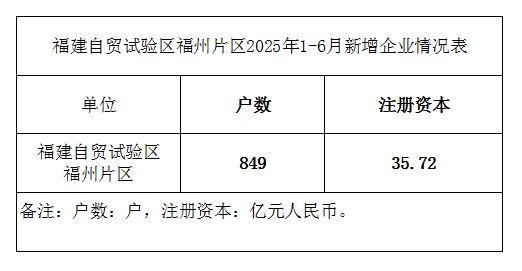 福建自贸试验区福州片区2025年1-6月新增企业情况表
