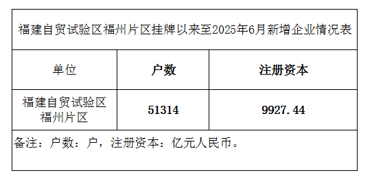 福建自贸试验区福州片区挂牌以来至2025年6月新增企业情况表