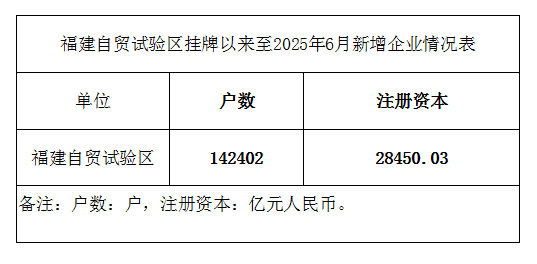 福建自贸试验区挂牌以来至2025年6月新增企业情况表