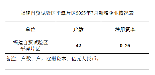 福建自贸试验区平潭片区2025年7月新增企业情况表