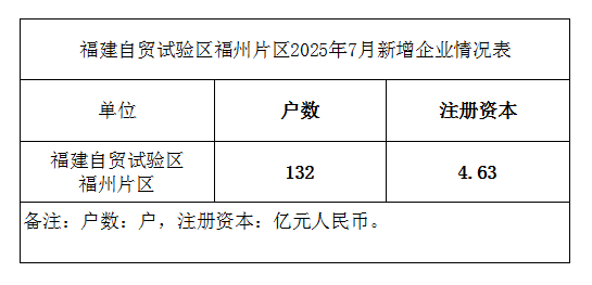 福建自贸试验区福州片区2025年7月新增企业情况表