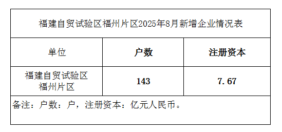 福建自贸试验区福州片区2025年8月新增企业情况表