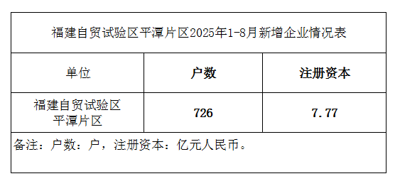 福建自贸试验区平潭片区2025年1-8月新增企业情况表