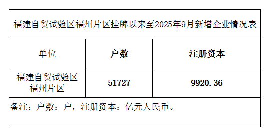 福建自贸试验区福州片区挂牌以来至2025年9月新增企业情况表