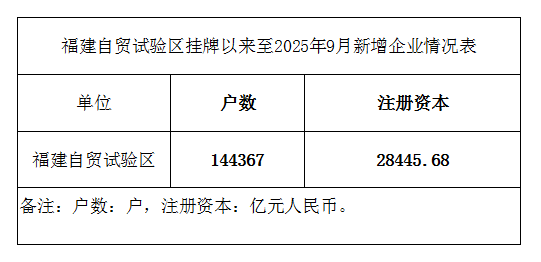 福建自贸试验区挂牌以来至2025年9月新增企业情况表