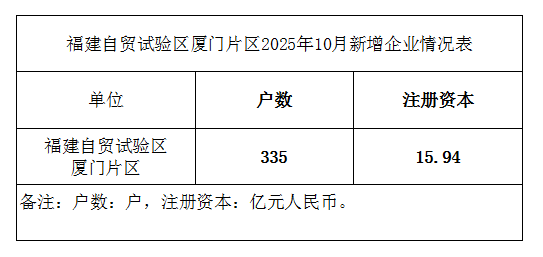 福建自贸试验区厦门片区2025年10月新增企业情况表