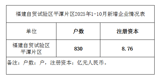 福州自贸试验区平潭片区2025年1-10月新增企业情况表