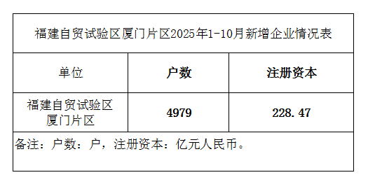 福州自贸试验区厦门片区2025年1-10月新增企业情况表